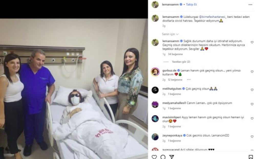 Ünlü sanatçı Leman Sam, önceki akşam Lüleburgaz'da gerçekleştirdiği konserin ardından halsizlik şikayetiyle hastaneye başvurdu. Yapılan tetkikler sonucunda Sam'a koronavirüs teşhisi konuldu, hemen tedavi süreci başlatıldı.